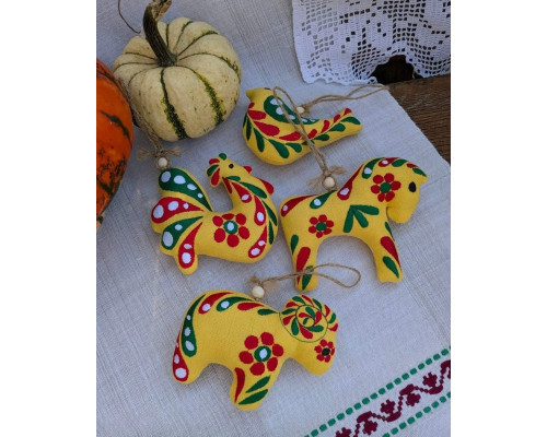Унікальна Яворівська забавка відтворена у вишитих підвісках українськими майстринями. Надзвичайно акуратні вироби.